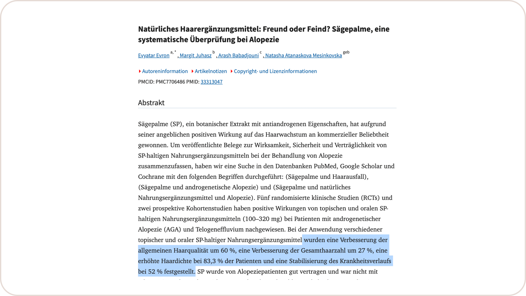 Untersuchungen haben gezeigt, dass bei 30% der Probanden eine Verbesserung ihres Haarwachstums stattgefunden hat.