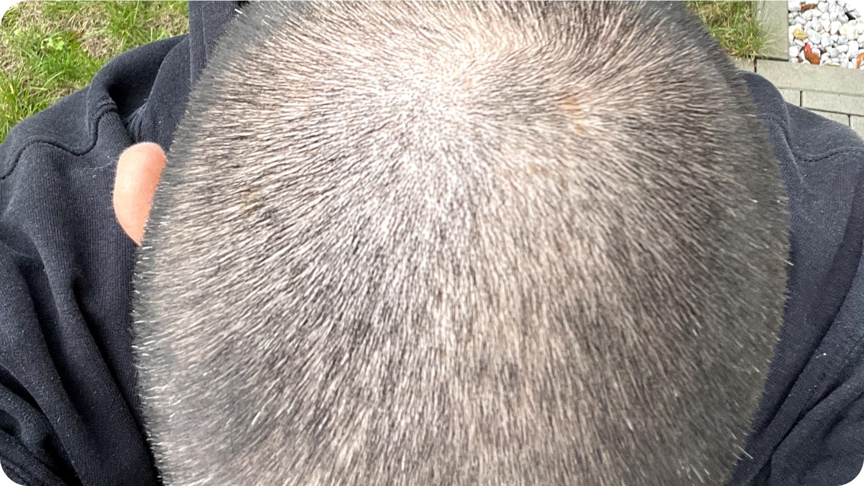 Und tatsächlich, es war ein Unterschied zu erkennen. Mit großer Aufregung stellte ich fest, dass vor allem die lichten Stellen auf meinem Scheitel deutlich dunkler erschienen und die kleinen „Löcher“, die sich über den ganzen Kopf verteilt hatten, weniger geworden waren.