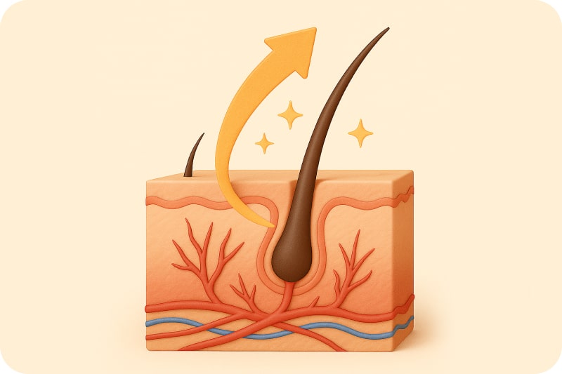 Aktiviert ruhende Haarwurzeln und steigert die Durchblutung.