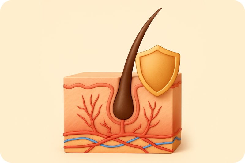 DHT lagert sich an den Haarfollikeln ab, unterbricht die NĂ€hrstoffversorgung â und stoppt so den natĂŒrlichen Wachstumszyklus deiner Haare.